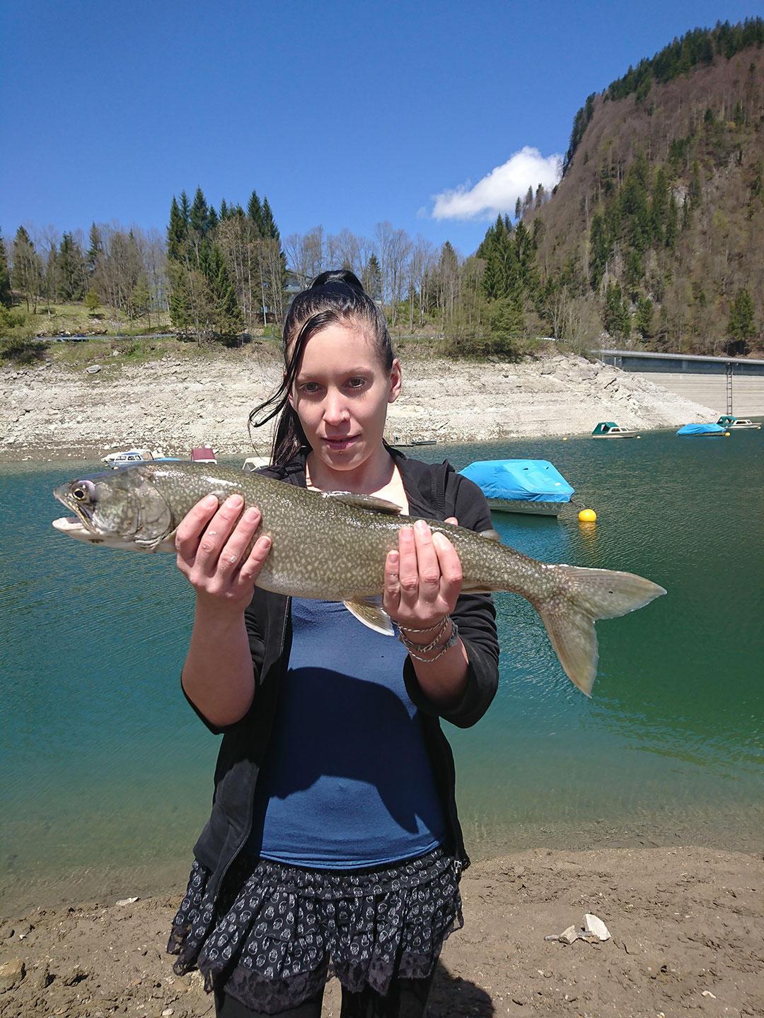 Am sonnigen 5. Mai gegen 13.20 Uhr konnte Cornelia Hintermann aus Necker diesen tollen Saibling fangen. Verwendetes Gerät: Evolution ES-652ML-Rute 1,95 m, Shimano 1000 FB-Rolle, 4-fach Geflochtene, Bienenmade.