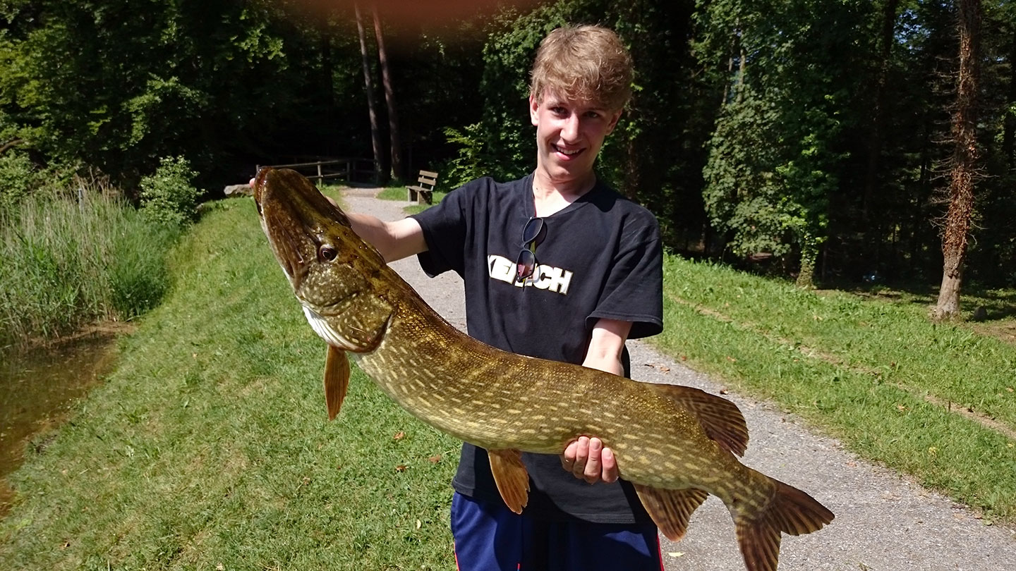 Jan Schellenberg aus Zürich schreibt: «Am 6. Juni gegen 11 Uhr konnte ich am Waldweiher in Langnau-Gattikon diesen kapitalen Hecht fangen. Da der Waldweiher ein sehr kleines Gewässer ist, ist dies für mich ein ganz spezieller Fisch.