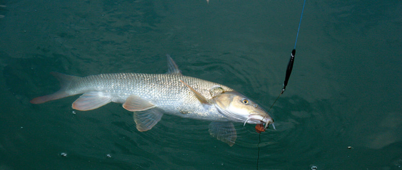Die Flüsse erwachen. Am Grund wühlen, wuseln und wachsen unzählige Kleinlebewesen. Dasselbe im Gewirr der Wasserpflanzen: Insektenlarven, Krebse, Würmer, Egel und Schnecken «à discretion». Abertausende von frisch geschlüpften Jungfischen drängen sich zu dunklen Wolken und verwandeln das Wasser in eine Proteinsuppe. Die Natur tischt im Juni ein üppiges Buffett auf und die Fische feiern das Leben. Der Alet erntet sogar Früchte wie Kirschen, Mirabellen und Brombeeren. Flussräuber wie Forellen, Egli, Rapfen und Welse schlagen sich die Bäuche voll. Bei einem intensiven Schlupf pflücken selbst Hechte Maifliegen von der Oberfläche und der üppig wimmelnde Fischnachwuchs weckt sogar bei «Friedfischen» wie Karpfen und Barben den Jagdinstinkt. Es ist der perfekte Zeitpunkt, um kapitale Barben mit Gummifischli oder Streamer zu fangen. Oder mit Frolic am Haar – wie im Bild.
