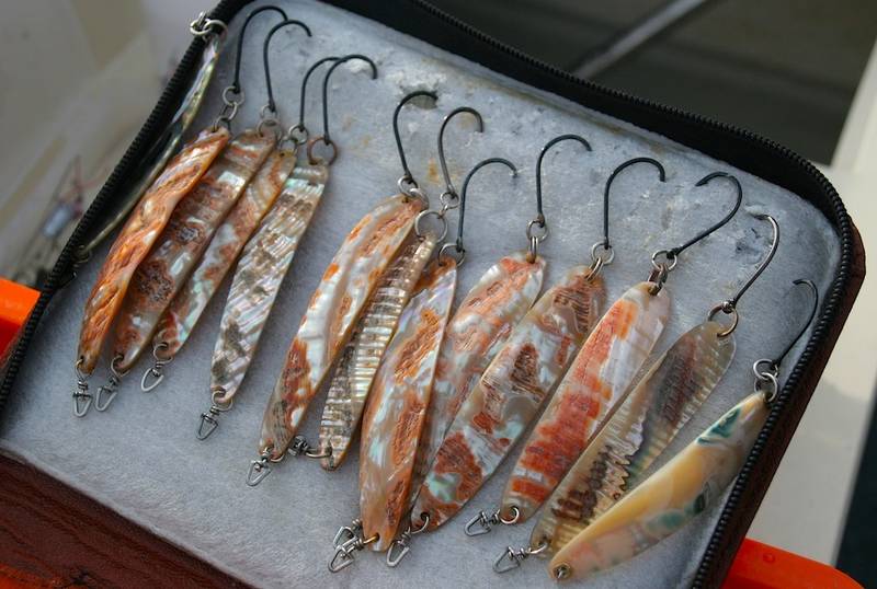 Selbst ein Kenner kann nur ungefähr abschätzen, wie sich eine Perlmutt-Spange im Wasser bewegt. Begehrt sind schlanke, mässig gekrümmte Formen, die auch bei zügigem Tempo schlängeln, aber nicht um die eigene Achse rotieren. Bis man so ein «fängiges» Etui zusammen hat, muss man viel Zeit investieren und Erfahrungen sammeln.