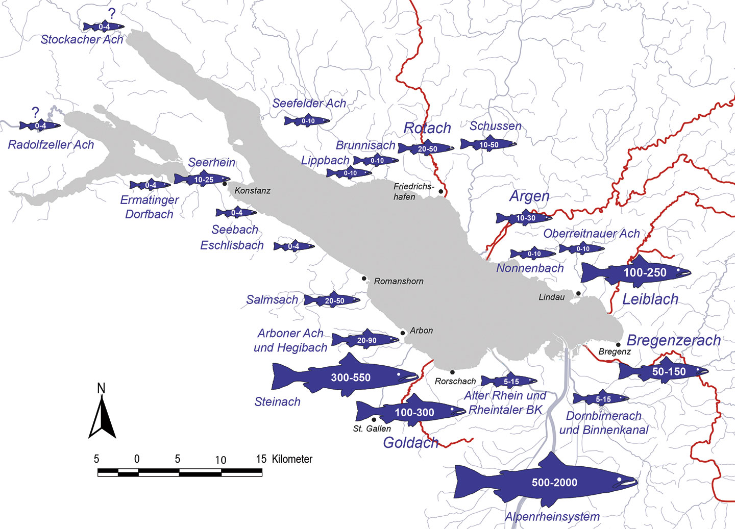 Keine Frage, der Bodenseeforelle geht es heute bedeutend besser als vor 30 Jahren. Wurden 1985 gerade noch anderthalb Tonnen gefangen, gehen den Fischern heute immerhin fünf Tonnen im Jahr in die Netze. Dennoch ist das nur etwa halb so viel im Vergleich zu dem, was in der ersten Hälfte des letzten Jahrhunderts jährlich gefangen worden war.
