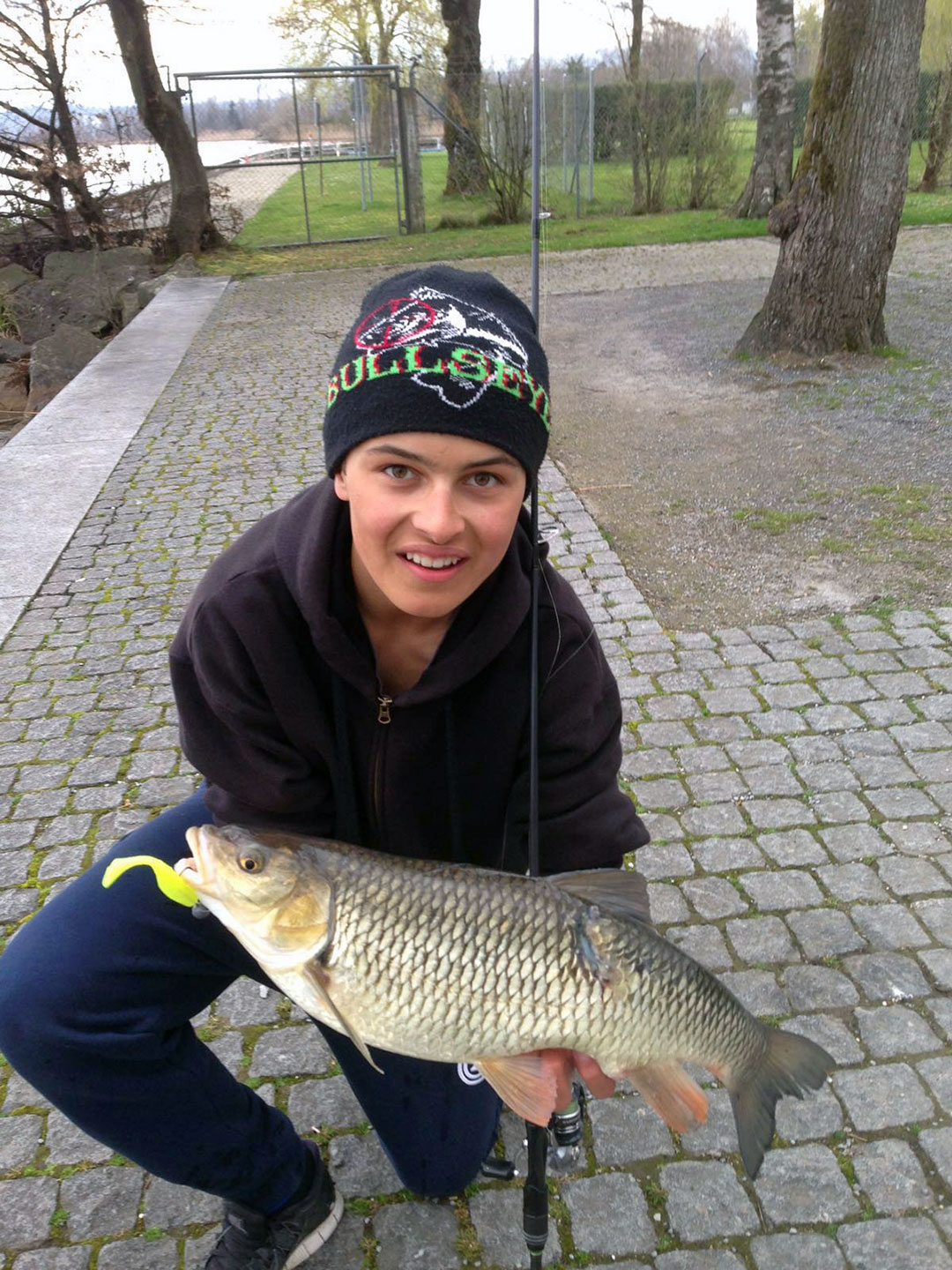 Jamie Zbinden aus Lachen – Zürichsee-Alet, 63 cm, 5 PfundAm 1. April um die Mittagszeit fing Jamie Zbinden aus Lachen am oberen Zürichsee diesen kapitalen Alet. Verwendetes Gerät: Bullseye Tip Whip-Rute, Shimano Rarenium 1000-Rolle, Keitech Gummifisch gelb.