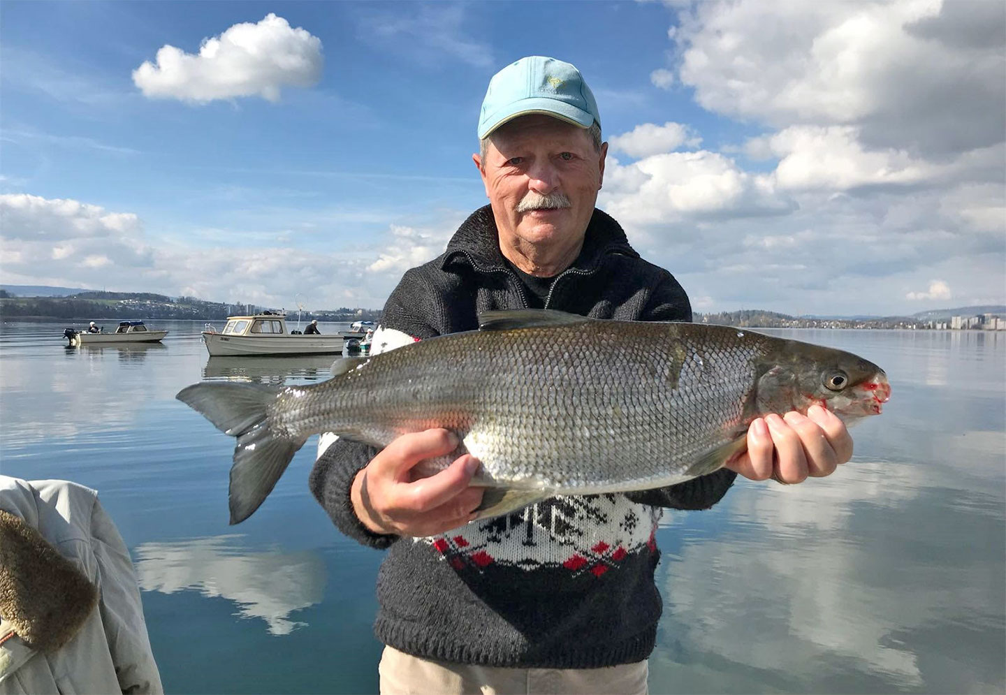 Diese 60cm-Felche aus dem Zugersee ist sicher bei den „Kapitalen“ einzuordnen. Gratulation an Charly Weibel für diesem tollen Fang.